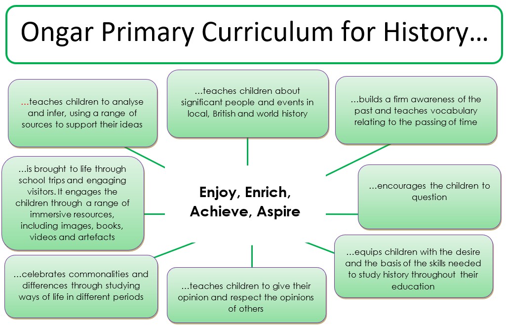 We aim to foster an interest in, and an understanding of, the past and to help children develop knowledge and understanding of the similarities and differences between their own local environment and other areas. Through this we hope to develop knowledge and understanding of the children's own country and culture and that of the wider world