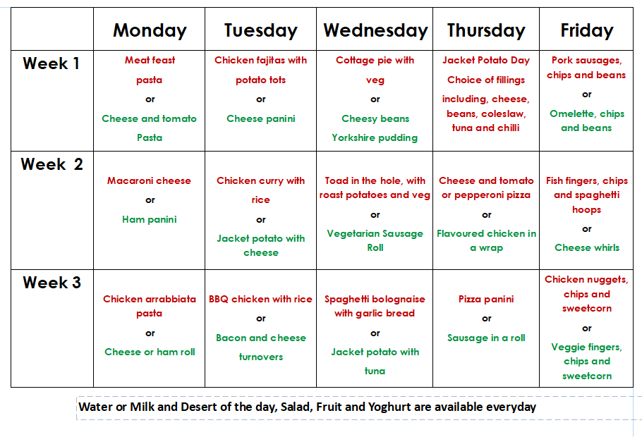 Any changes with regard to school meals will be mentioned in the weekly newsletter.
